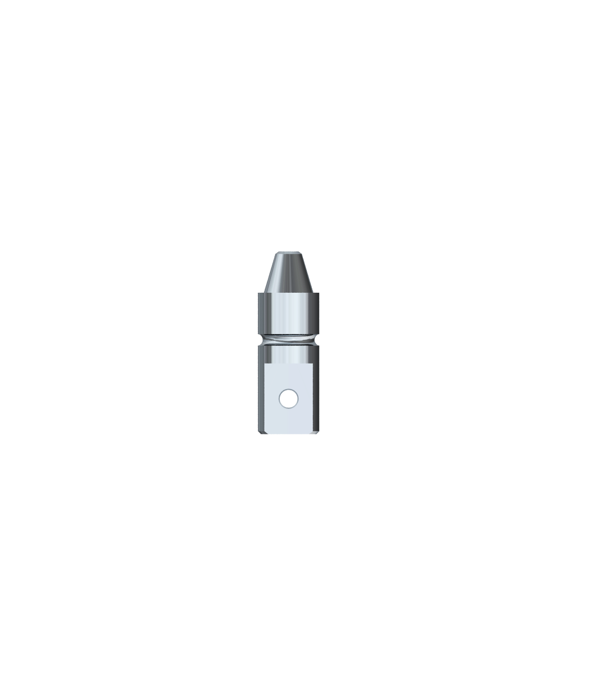 Dental Fusioni propone sull’analogo una faccia orientata che funge da anti-rotazione e un foro passante con una scanalatura laterale per ritenzione anti sfilamento/meccanica.