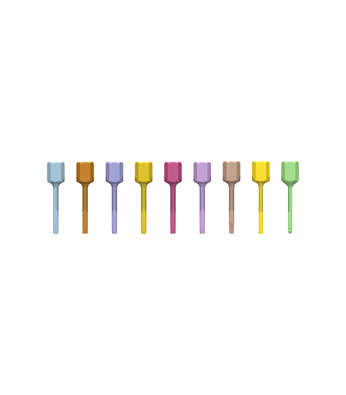 I chiavini Dental Fusioni sono marchiati con le varie misure, inoltre per un maggiore riconoscimento sono tutti anodizzati di colore diverso.