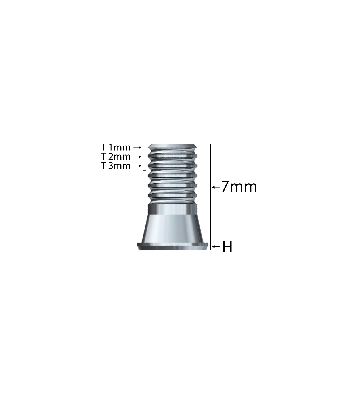 Nelle librerie implantari fornite diamo la possibilità di scegliere varie altezze delle connessione personalizzando il T-base in base al caso che si presenta per poi tagliarlo al banco a livello delle ritenzioni nella zona scelta(T1mm,T2mm,T3mm).